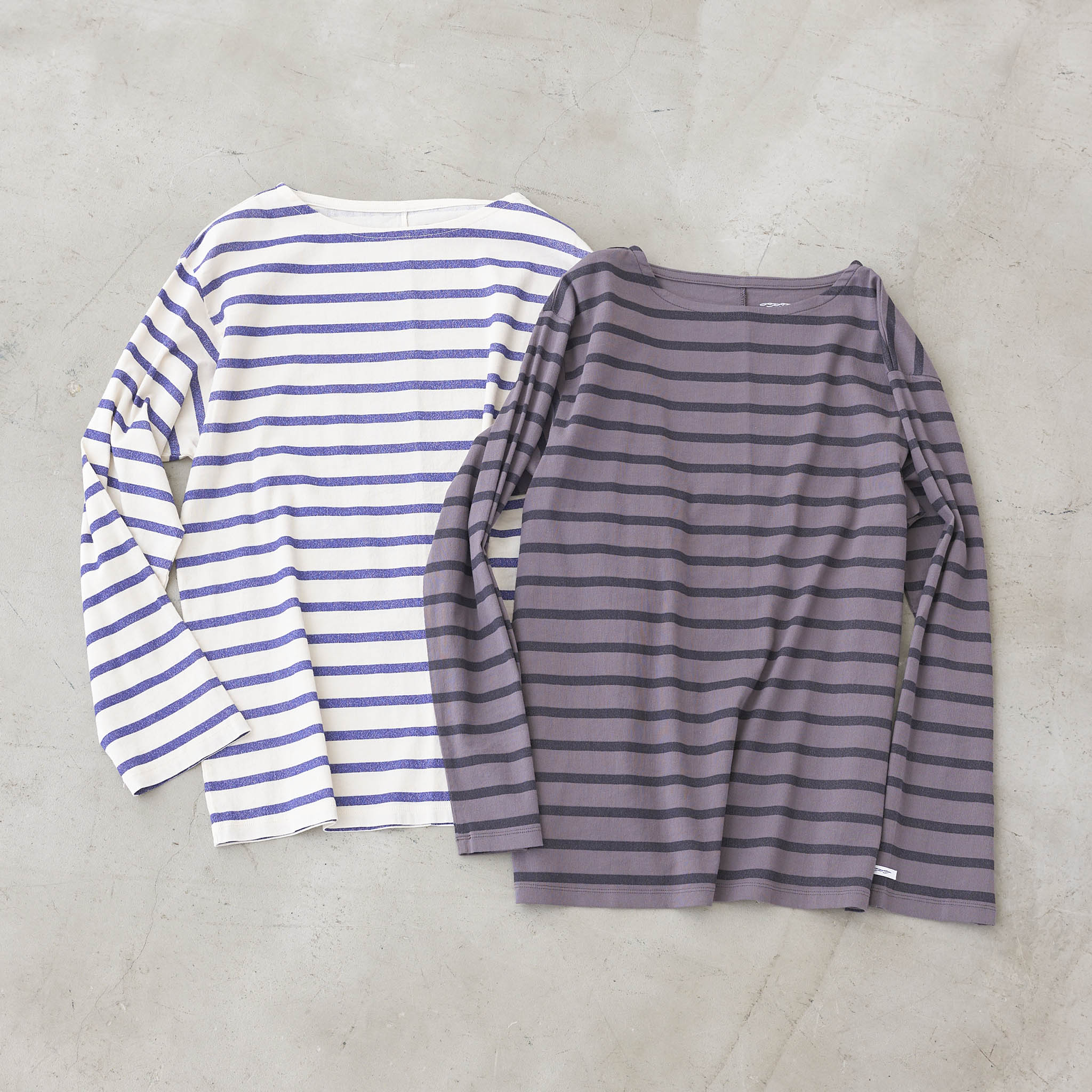 ゆとりのあるボックスシルエットとサイドのスリットは、1枚で着てもボトムスを重ねても決まる。ボーダー部分が2枚仕立てなので透けにくく、身体の線を拾いにくいのもうれしい。フリーサイズで、ネイビー、ブラックの2色展開。