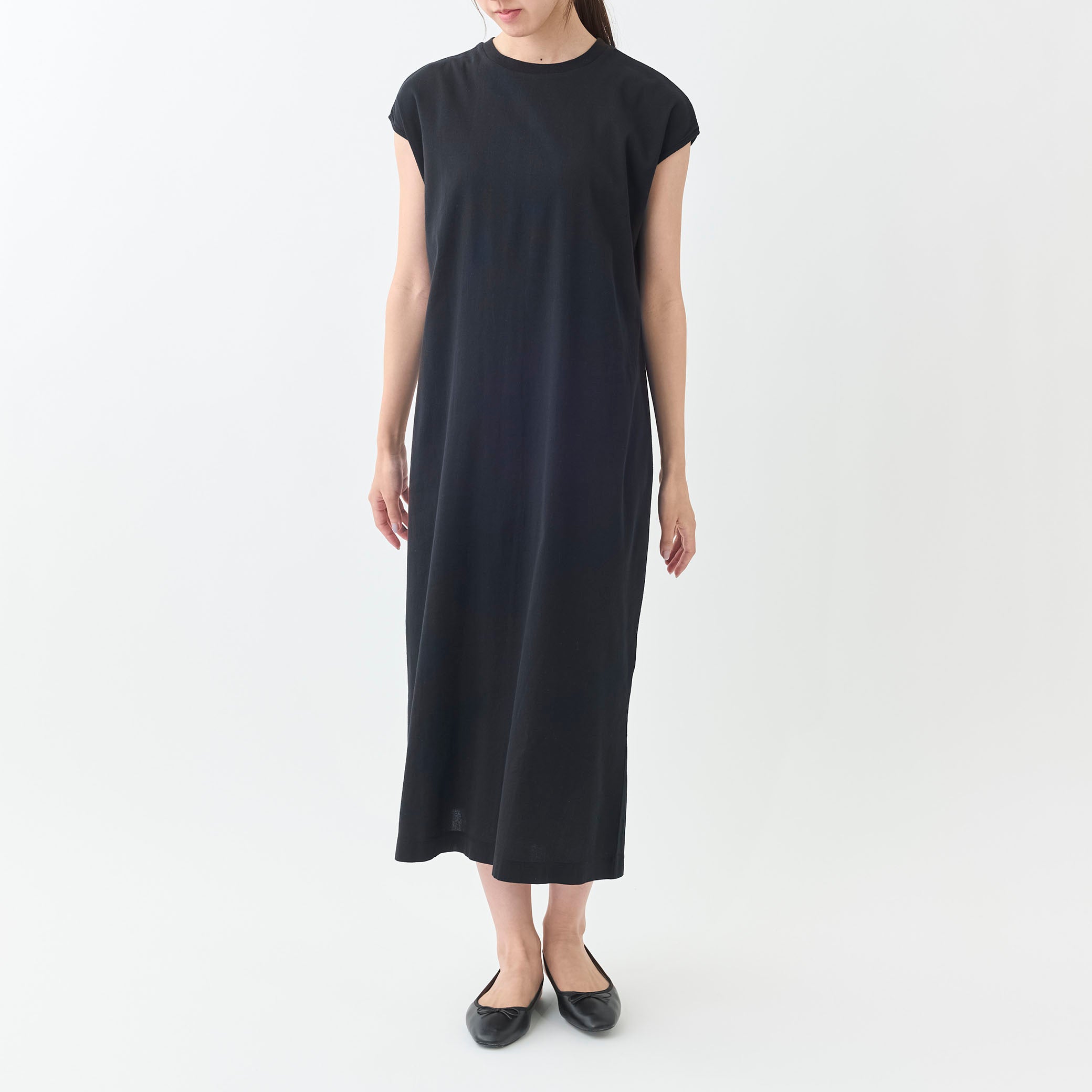 人気のONIを使ったスリーブレスワンピース。ほどよい肉感で透けを気にせず、暑い夏もさらっと着こなせます。