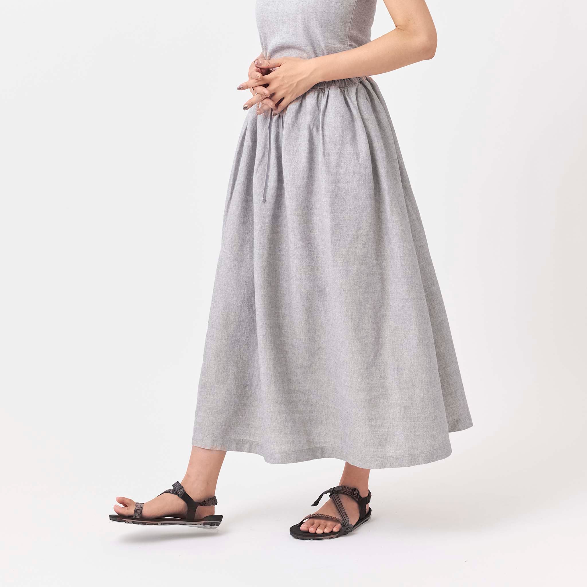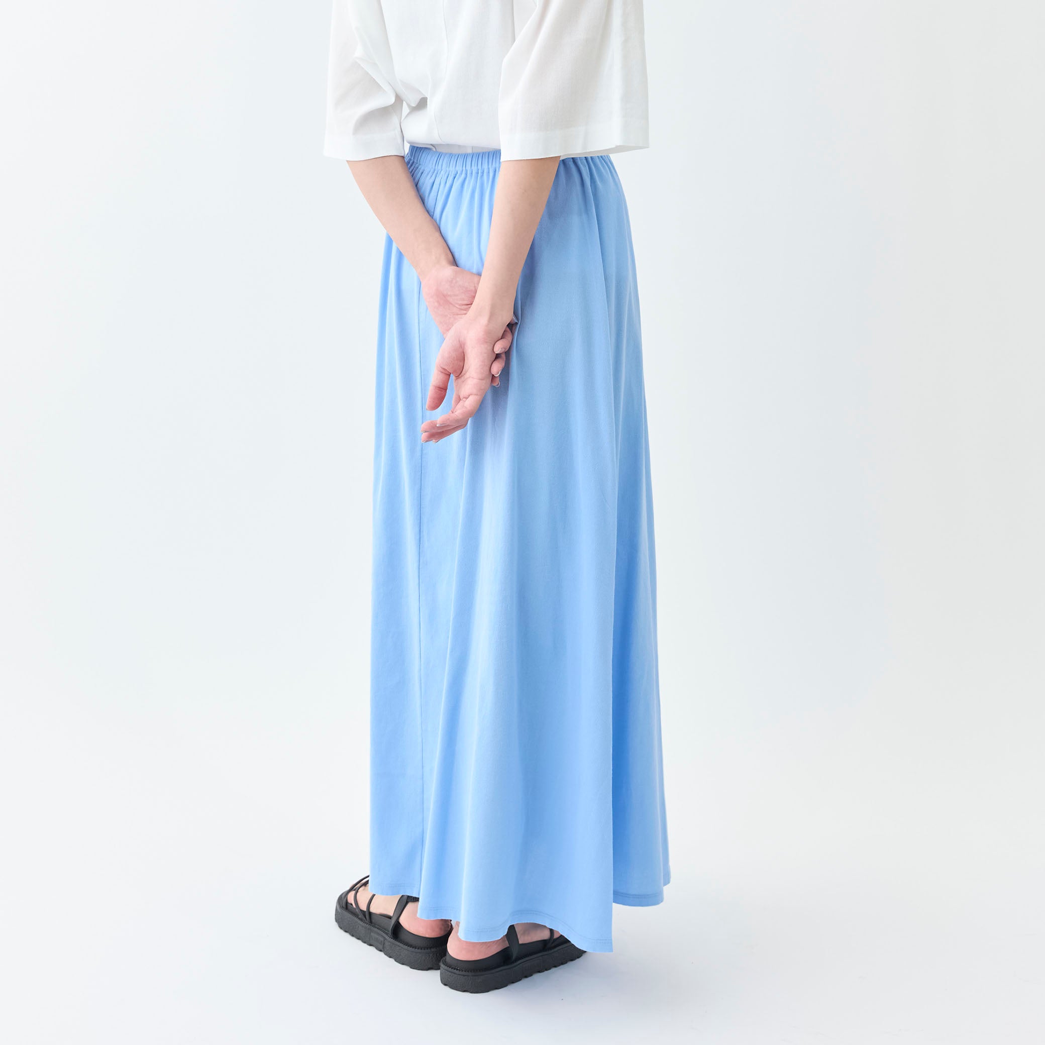 細身ですっきりとしたシルエットのスカート。ONI楊柳だから透けも気にならず、きれいめにもは着こなせます。