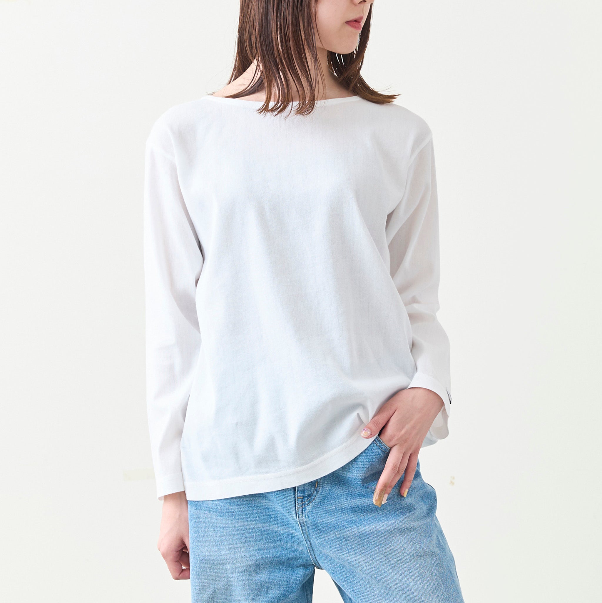 インナーにも使いやすく、シンプルでスタンダードなタイプのロングスリーブTシャツです。